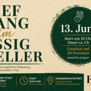 Vor den Türen unseres Hofes reifen die Zutaten für unsere Produkte heran. Früchte von optimaler Frische und kräftigem Aroma werden für unseren Essig ausgewählt. Hier schaffen wir ein süß-fruchtiges Zusammenspiel von alten Obstarten und erlesenen Kräutern, welches die exzellente Würze ergibt. Neben Essig, produzieren wir auch echtes Steirisches Kürbiskernöl. Ein passender Begleiter, welcher nach den strengen g.g.A. Richtlinien hergestellt wird. Gerne laden wir Sie zu einer Verkostung unserer Produkte ein. Entdecken Sie die Welt der Essig-Herstellung im Steirischen Vulkanland, im kulinarischen Herzen der Steiermark.